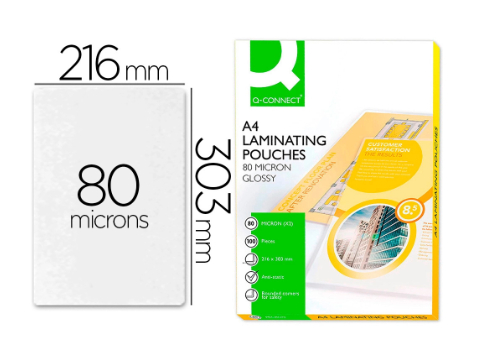 As bolsas de laminação Q-CONNECT 303 x 216 mm e 80 microns são a solução ideal para proteger e preservar os seus importantes documentos de tamanho A4.