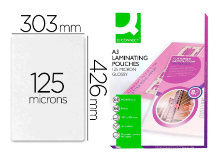 A bolsa de laminação Q-CONNECT 303 x 426 mm 125 mc DIN A3 é a solução perfeita para proteger e preservar os seus documentos importantes. Concebido especificamente para documentos de tamanho DIN A3, oferece uma camada protetora de 125 mícrons de cada lado, proporcionando uma rigidez e durabilidade excecionais.