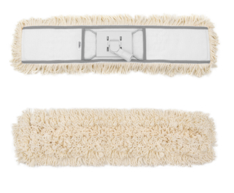 A mopa de algodão recolhe a sujidade e partículas numa limpeza a húmido ou seco.